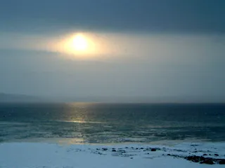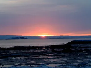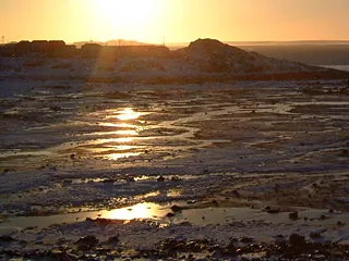À la faveur d’un temps de plus en plus chaud depuis la semaine dernière, notre petite équipe a attaqué le travail d’extérieur hier matin sous un soleil magnifique. Nous avons eu droit à un superbe lever de soleil sur la baie dont la marée charrie déjà tout un amas de morceaux de glaces. Debout sur le toit du Rehabilitation Center , face à la brise océane et devant ce décor grandiose, toutes vos expériences de cinéma Imax ne sont plus qu’un vague souvenir.
