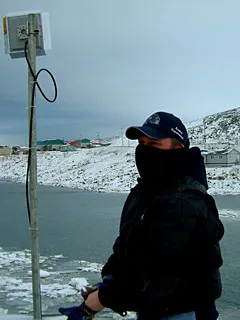 À mon arrivée à Kangirsuk mercredi dernier, j’ai été accueilli par Edward, le manager de la municipalité, qui est aussi le contact de l’ARK en charge du service Internet. Comme le lien Internet fonctionnait par intermittence depuis quelques jours dans le village, Edward m’a immédiatement emmené à la station satellite terrestre pour me montrer l’élément qu’il devait redémarrer à chaque coupure de service.