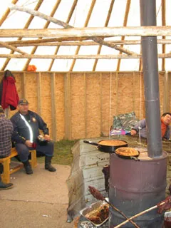 Entre ces contacts et toutes nos tâches techniques nous avons peu de temps à nous, les journées passent très vite et à 21h tout le monde est au lit !!! Nous aurons juste un moment, la veille de notre départ pendant l’heure du lunch, pour aller voir l’arrivée des participants du ‘Journey of Wellness’. Après un mois de marche à travers les territoires de la Baie James les concurrents arrivent à Mistissini. Les fonds récoltés par cette marche vont permettre d’équiper les villages en équipement médicaux. On dirait que tout le village est là pour les accueillir. Dans une grande tente des tables sont dressées pour servir à ces marcheurs méritants un bon repas. Je ne sais pas combien de kilomètres ils ont parcourus mais leur trajet sur la carte est impressionnant et les conditions dans lesquelles ils l’ont fait le sont aussi.