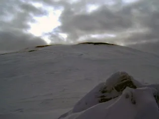 La construction est assez spéciale, surtout la clef de voûte, qui semble faire tenir tout l’édifice, on voit la lumière passer à travers les jointures des blocs de glace, c’est vraiment curieux. Une fois, dégelés, nous devons retourner dehors. Ce n’est pas l’envie qui nous manque de rester ici, mais le devoir nous appelle, notre ventre aussi nous interpelle! L’entrée rebouchée, le retour se fera face au vent et là il fait “fret en ciboire”.
