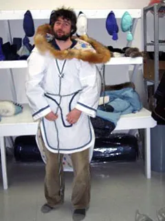 Arrivés à l’aéroport, c’est Camille de l’Office Municipal Habitation Kativik qui, de passage par là, nous donnera un lift jusqu’à notre hôtel avec nos nombreuses boites. Il est dans le coin depuis déjà un bon paquet d’années et il commence à y prendre goût. Moi qui cherche toujours quelqu’un pour me montrer comment on fait un igloo, un vrai “made in inuit”, il va peut être pouvoir me renseigner! En tous cas, il y en a qui sont construits à côté d’une petite île, que l’on aperçoit entre les rafales de neige qui nous soufflent dans le dos.