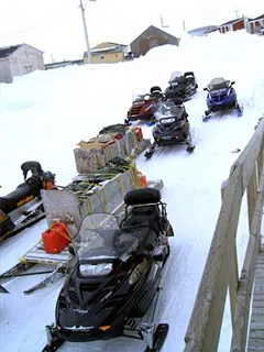 C’est le printemps pour tout le monde et la nature n’attend pas. Ceux qui peuvent aller chasser iront chasser, ceux qui doivent aider pour la recherche et le sauvetage iront. Ha oui! j’ai oublié de vous tenir au courant: depuis presque le début de mon séjour, toute la région est sens dessus dessous, à la recherche d’un autre chasseur disparu depuis maintenant 1 mois. Toute la région a été quadrillée en skidoo ou en hélicoptère, mais sans trop de succès. Des traces ont été retrouvées, on sait où on a vu la personne pour la dernière fois. Toute la journée de nouveaux skidoos s’arrêtent devant la mairie et partent pour quelques jours faire la recherche avec un traîneau plein de vivres. Le système communautaire est ainsi fait: lorsque quelqu’un est absent du village, les autres personnes doivent aller à sa recherche à tour de rôle selon leurs moyens.